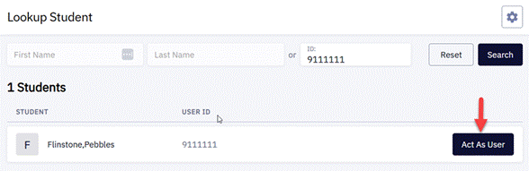 - Select Act As User and agree to the FERPA statement.