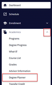 - You are now viewing the Student Center as the student. Use the left-hand navigation to select Academics, then Degree Planner.