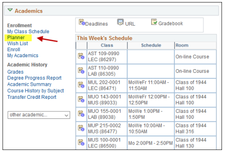 Access The Planner from the MaineStreet Student Center using the Planner link available under the Academics section of the Student Center.